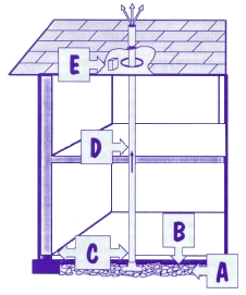 Vent Pipe: A 3- or 4-inch PVC pipe (or other gas-tight pipe) runs from the gas-permeable layer through the house to the roof, to safely vent radon and other soil gases to the outside.